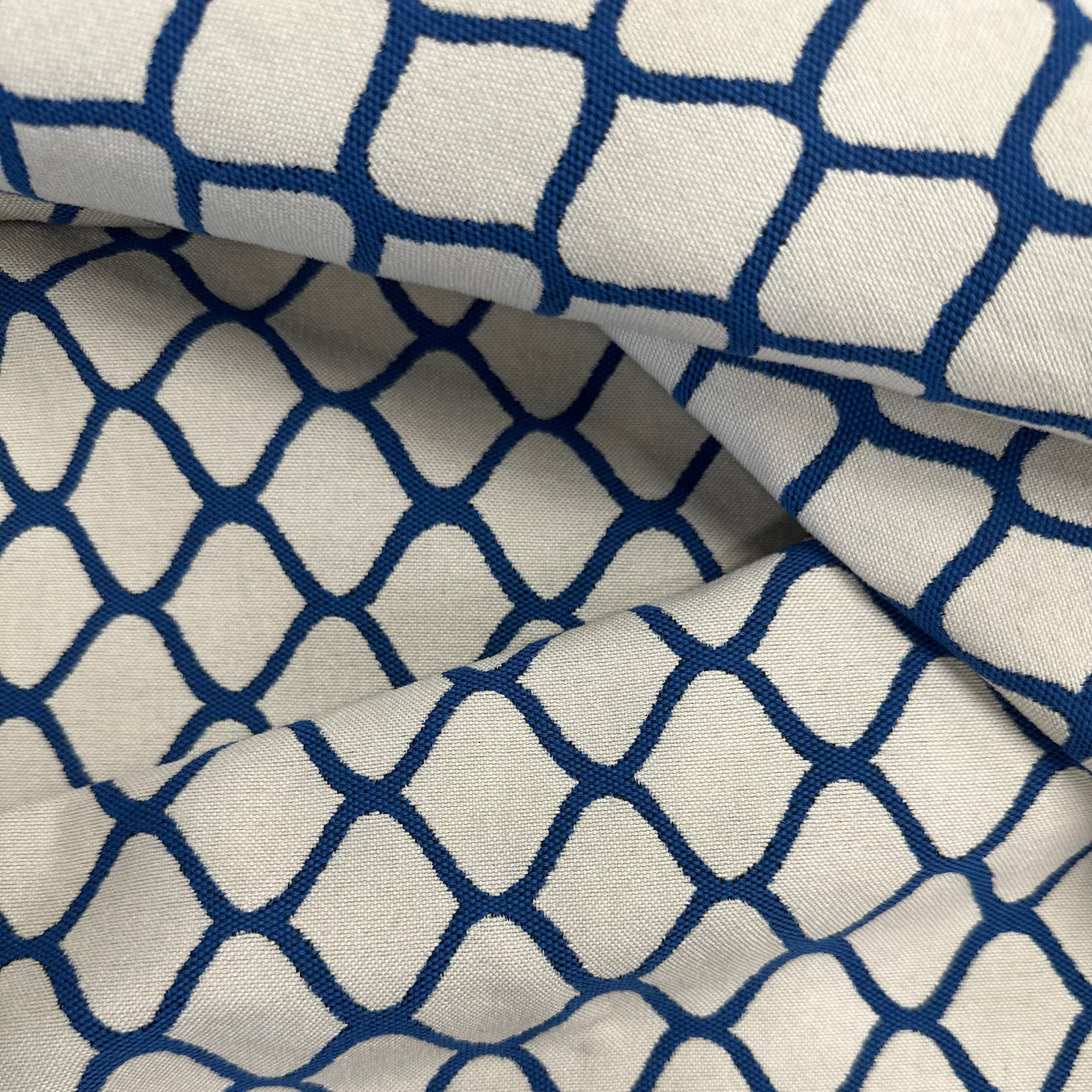 Southfield Nauticals Inside Out performance indoor/outdoor fabric is a gorgeous woven small-scale ogee or lattice fabric in a medium blue and white. In addition to the basic performance characteristics of being super durable and easy to clean, Inside Out is also bleach-cleanable, liquid-resistant, fade-resistant, and disinfectant spray-safe. A fabulous fabric perfect for upholstery, drapery, cornice boards, curtains, and creating home accents such as pillows and bedding. This all-in-one timeless, yet trendy fabric is the answer to all your performance needs, inside or out!