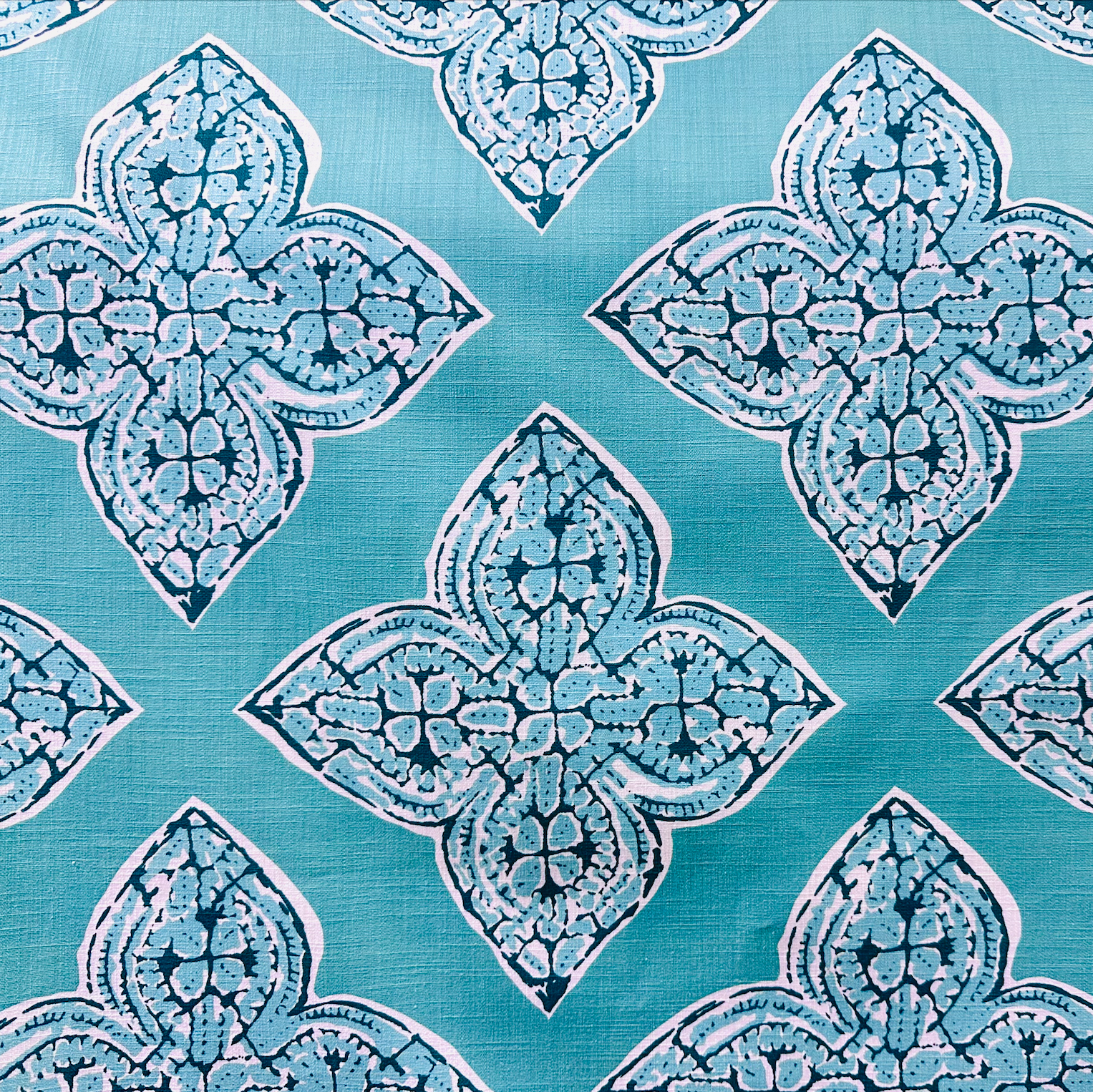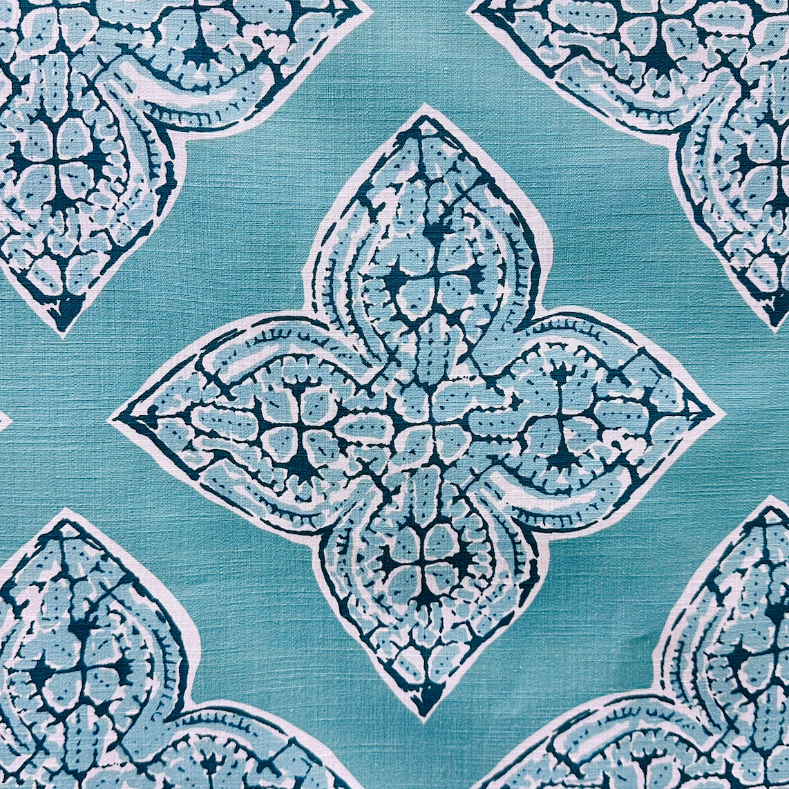Elevate your interior design with Lacefield Room 422 Aubry Spa Decorator Fabric, featuring a refined medallion print in soothing spa teal and white. The intricate quatrefoil pattern lends a bohemian essence, perfect for creating tranquil, sophisticated spaces. Crafted for both durability and style, this fabric is ideal for upholstery, drapery, or accent pieces that demand an expert touch. Its calming palette and elegant design seamlessly blend luxury with a relaxed vibe, making it a versatile choice for spa-inspired or contemporary interiors.
