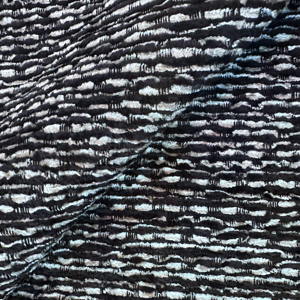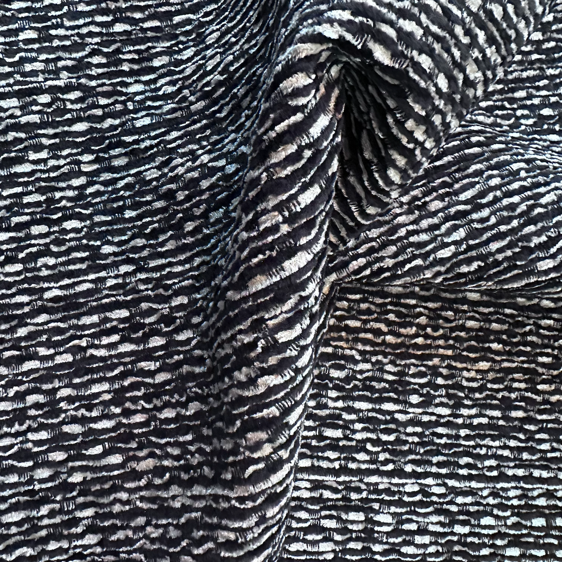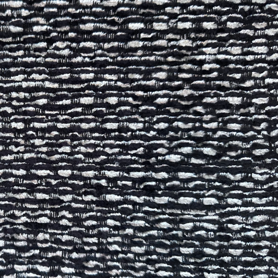 Track Ebony Upholstery Fabric features a chunky chenille weave that delivers rich texture and durability. This black and white woven represents as a solid adding a timeless, sophisticated look to any space. The fabric is finished with an acrylic kiss coat backing, enhancing its strength and making it ideal for upholstery projects requiring both style and resilience.