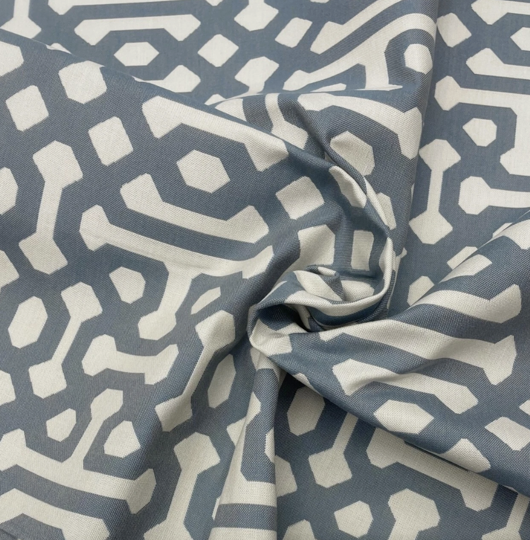 Sunbrella 45991-0014 Fretwork Denim Indoor/Outdoor Fabric is a beautiful, durable outdoor fabric featuring a traditional lattice pattern in a soft pastel color palette ready to coordinate with any decor. Sunbrella is a water-resistant yarn-dyed acrylic outdoor fabric that is resistant to fading, staining, and wear, dries quickly, and does not promote mildew growth. This fashionable fabric's durability makes it highly functional for almost every application. Uses include outdoor cushions, tablecloths, outdoor/indoor upholstery projects, decorative outdoor pillows, and other outdoor projects.