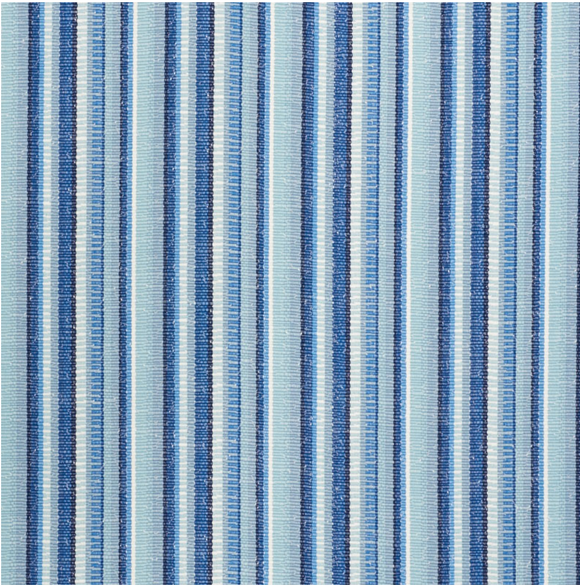 Schumacher Primavera Indoor Outdoor Sea Navy Blue Denim Off-White Stripe Fabric is a cheerful espadrille stripe fabric sure to bring joy to your decor inside or out. It is also ideal for creating home accents such as pillows and bedding.
